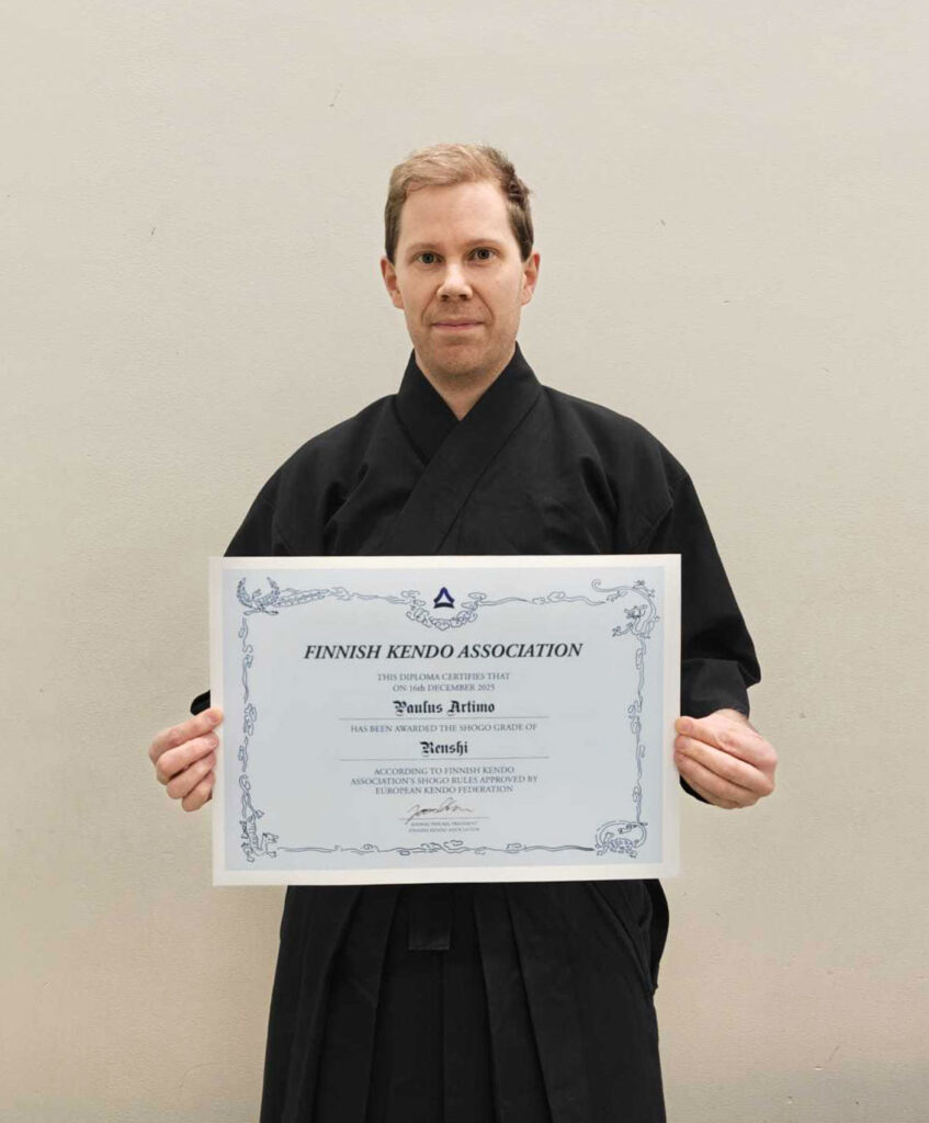 The Iaido Renshi title has been awarded to Paulus Artimo, and the appointment was officially announced during the Finnish Iaido Championships held in Riihimäki.